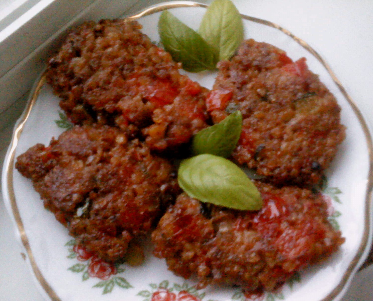 Pomidory parzymy, obieramy ze skóry i drobno kroimy. Czosnek siekamy i wrzucamy na rozgrzaną oliwę, przyprawiamy. Po dwóch minutach dorzucamy posiekane pomidory, dusimy.W między czasie słodzimy i ewentualnie dorzucamy więcej pozostałych przypraw. Na koniec dodajemy ugnieciony widelcem groszek, mieszamy i dusimy razem ok 3 minut. W ostatniej chwili wpadło mi do głowy, aby dorzucić kostkę drobno pokrojonego tofu.